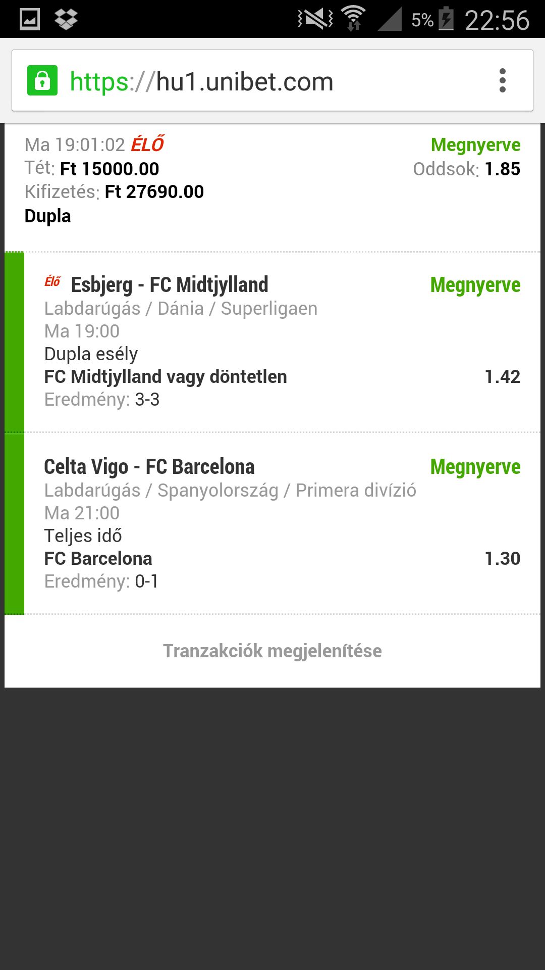 Ez így szép, most nézem az eredményeket a Real hozta amitől kicsit tartottam, a Barca kézi is, a Kiel meg kikapott