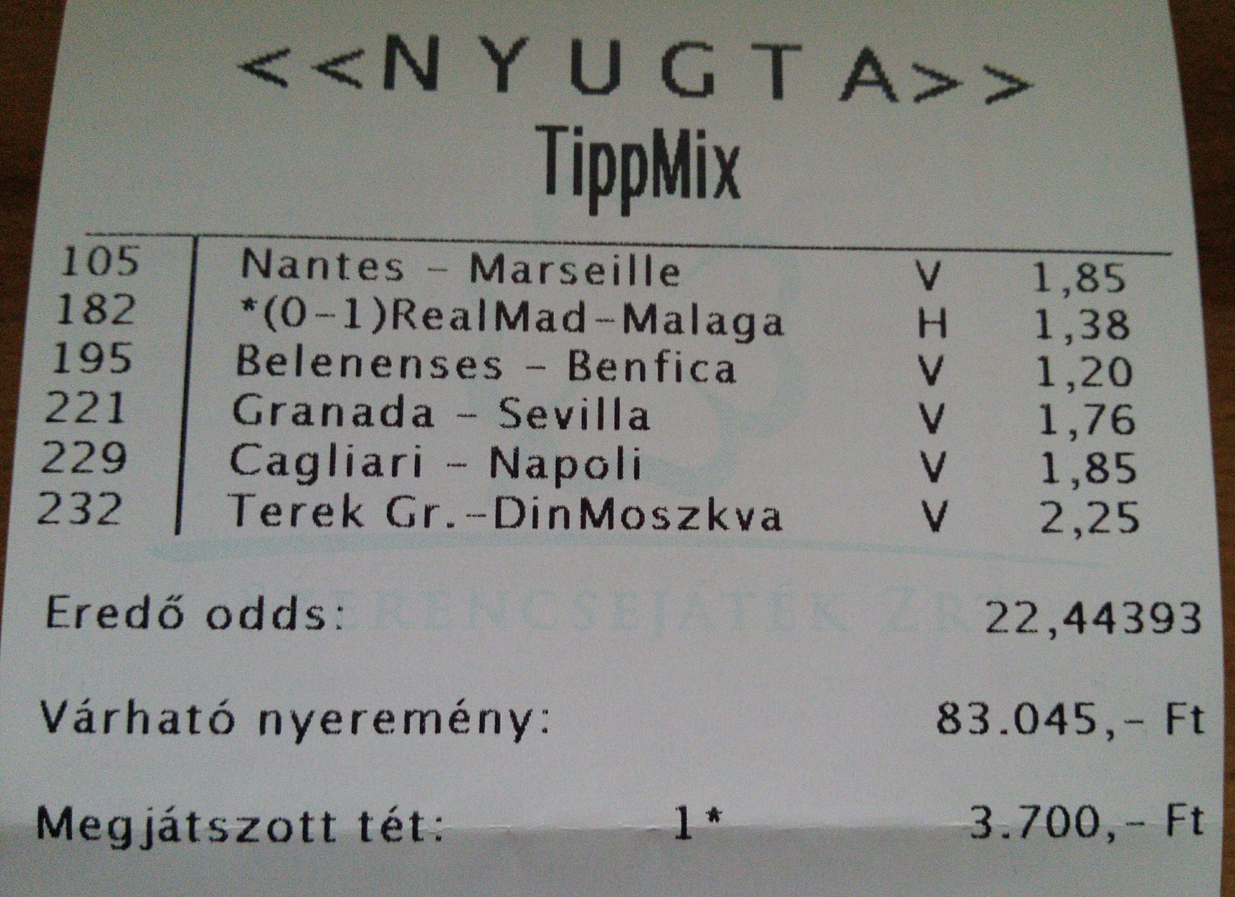 Élőben is egyből 1,8ra emelkedett az odds.(#86523) Zjunior: Szép szelvény, grat.