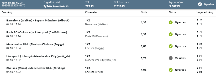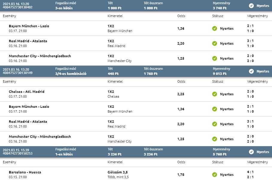 Ha valóban így volt, ahogy mondtad, akkor még a reál madrid meccsen kell egy gól 14:59 előtt és jön ~340 ezer egy kedves idős ismerősömnek. Megérdemelné