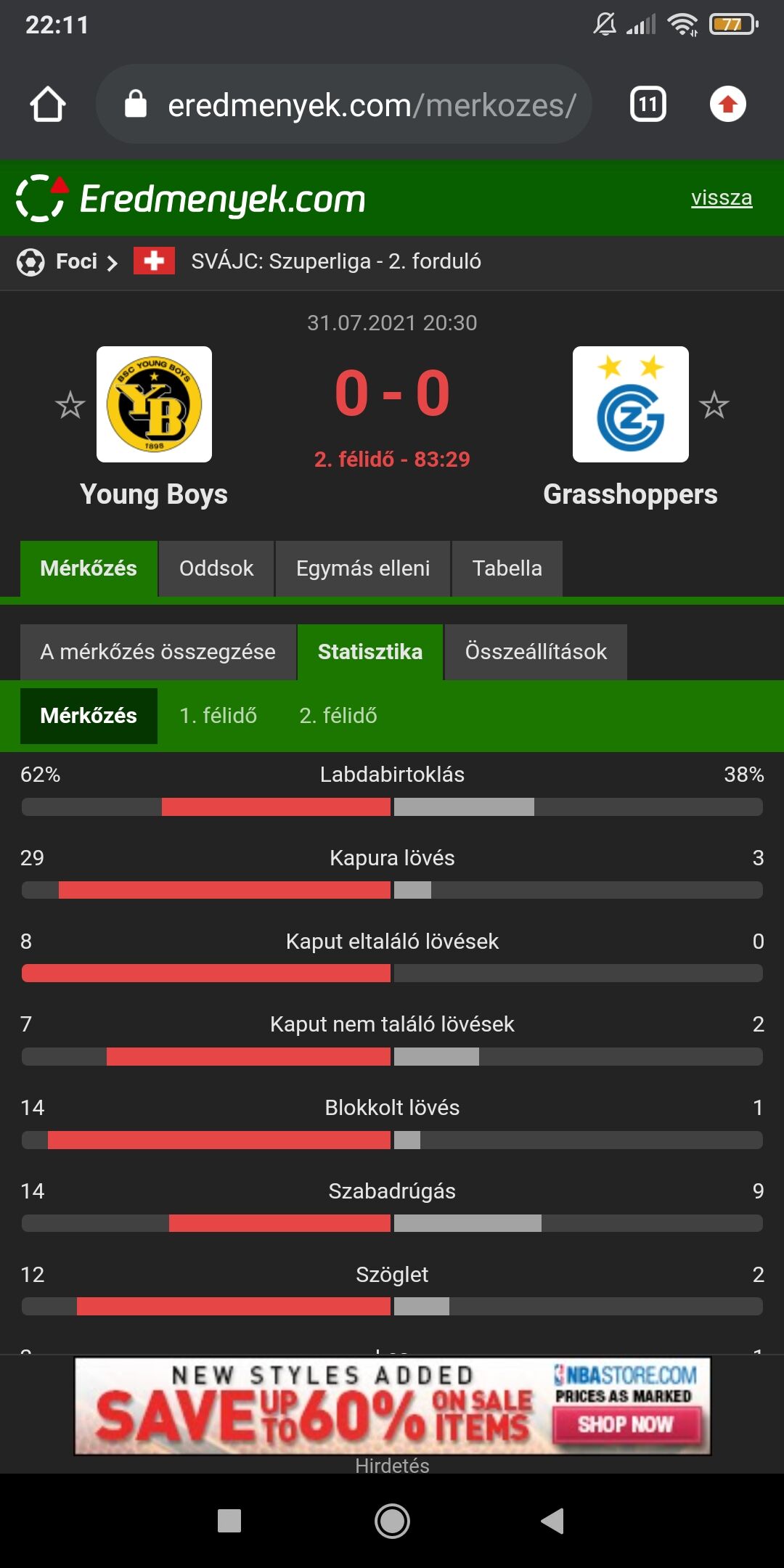 Mezőnyben dominál a hazai csapat, de olyan idióta szabálytalanságokat követnek el, hogy a hajam kihullik. Ezekből a pontrúgásoknál még akár bármi is lehet a vendég oldalon. Csoda, hogy még mindig 1:0