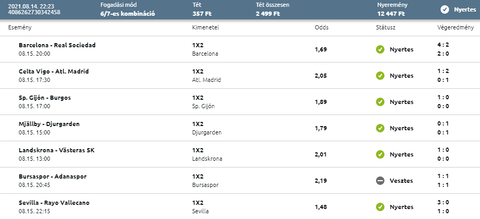 A Mallorca kell valakinek? Sajna csak a 30. percben tettem rájuk (1.37), akkor már 1:0-volt. De aki nem késett le róla, annak 2,25-ért jó fogás lehet...