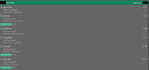 Hogy valami azért legyen, apróval ment egy ilyen: Man Utd, Brighton, Tie (Watford + 1), Newcastle & over 2.5 - eredő odds 107