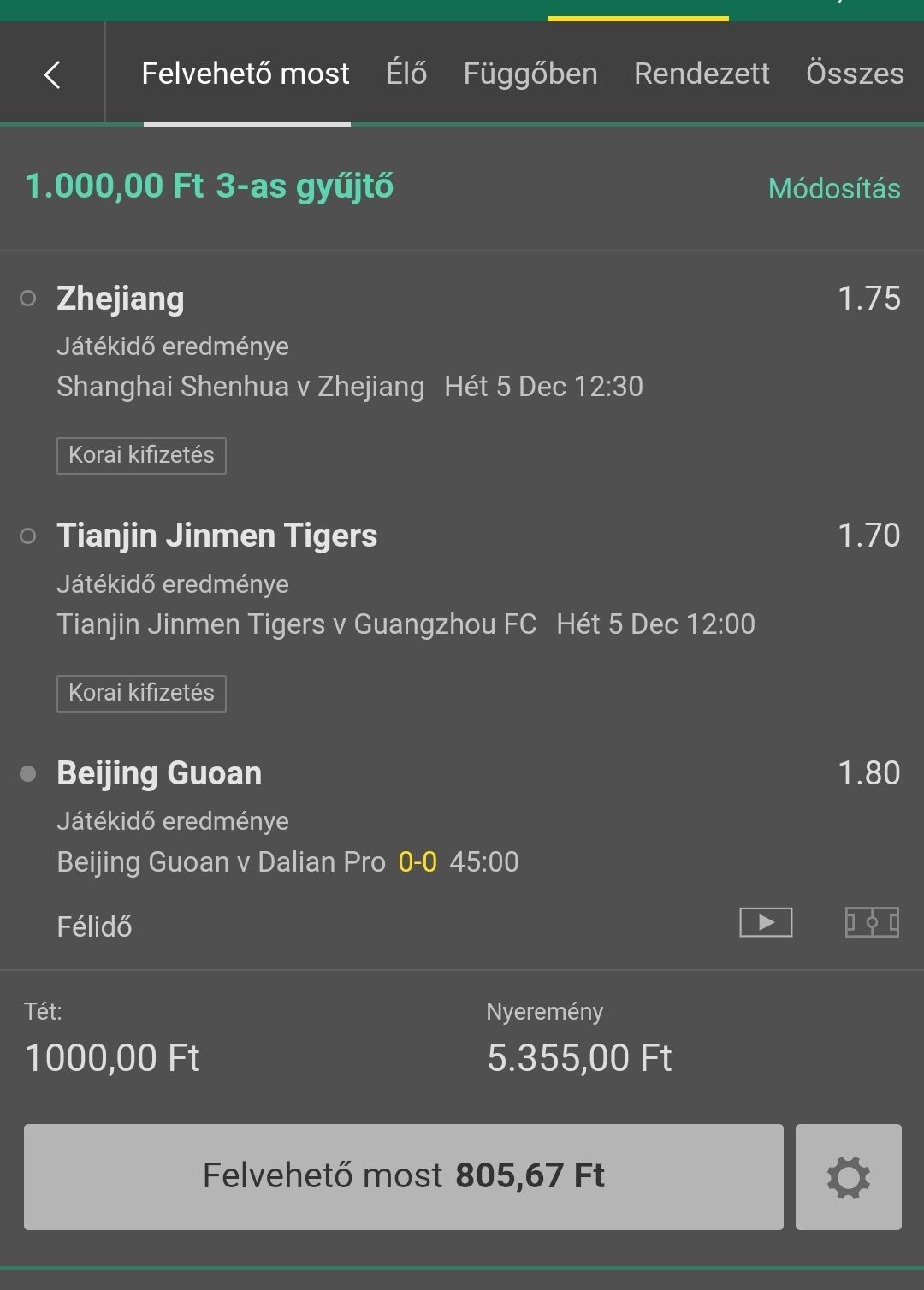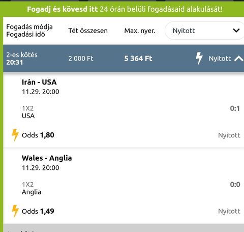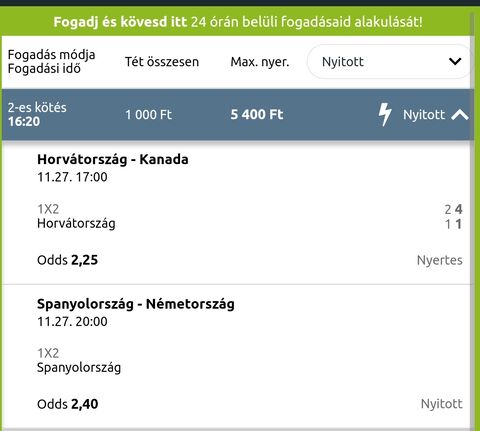 Én 2db meccset raktam meg 1000 ft-al, horvát meg spanyol győzelem. 5x odds lett így.