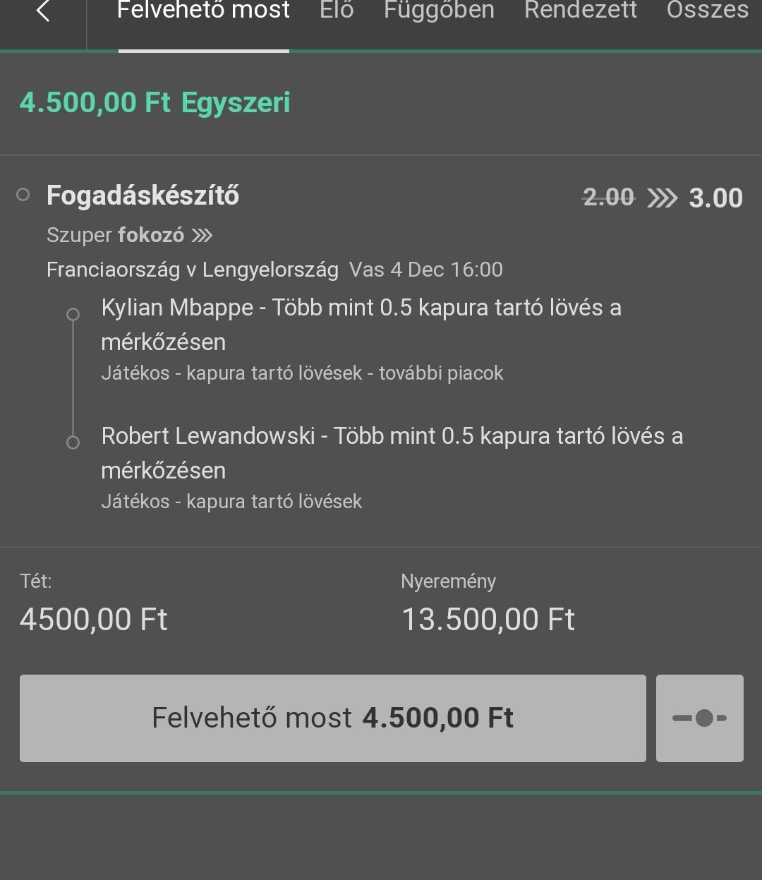 8,0x nél raktam a franciákra, ha bejön nagyot ment volna..