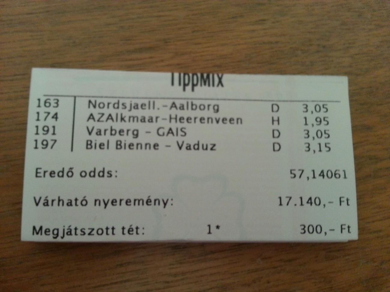 ezért nem lehet manapság tippmixelni úgy mint régen. Olyan változó a csapatok teljesítménye, vagy bunda én már nem tudom, de a kamikon meg a bukszákon kívül szerencsejátékban nem sokat látok, sőt..