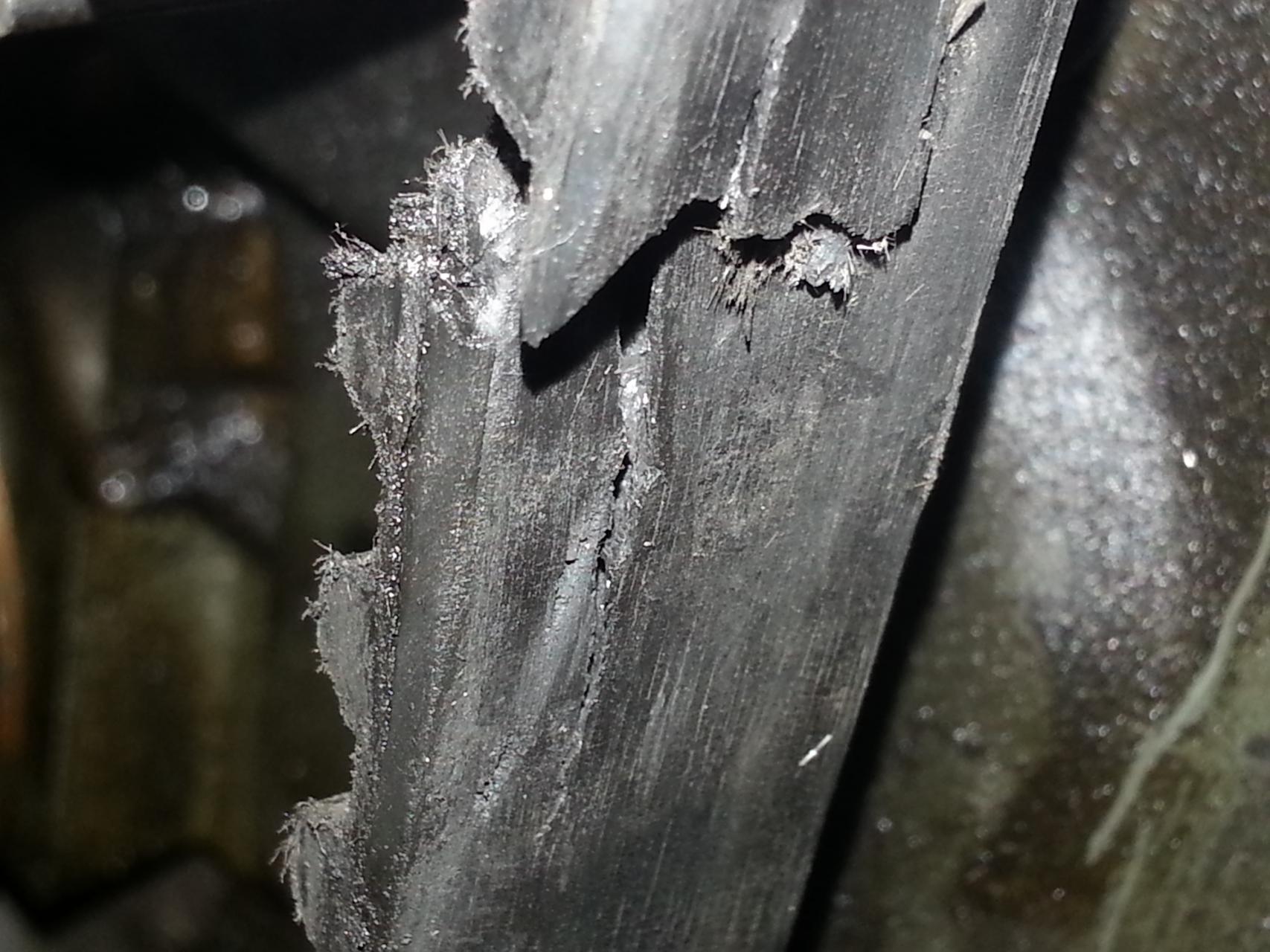 igazából elment az alapjáratom picit, és azért matattam ott, aztán valamiért kopogást hallottam a dekni felől, levettem a deknit, megtapogattam a szíjat, és mákom volt, (az ég velem volt) mert pont úgy állt meg a főtengely, hogy látható, tapintható helyre került t a szakadás, mert ha a túloldalon, vagy hátul/alul van észre sem veszem talán, csak a mikor már szakad.