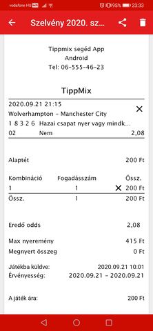 Nyert a mixim. Nem 200 forinttal tettem. Nap közben általában az appal megcsinálom ezeket alaptettel aztán megérzés alapján rakok rá pénzt. Most 5000 forinttal ment. A lényeg, hogy kifizették. Nem ilyen jellegű fogadasnal, de előfordult már, hogy kifizették. Akkor egy Sevilla-Real meccsen tettem azt, hogy sargalap X lesz. 2vel többet kapott a Madrid. Néztem a meccset, írtam, számoltam. Az app akkor is azt írta, hogy bukó, de a lottozoban szó nélkül kifizették. Mindenesetre érdekes. Valamint egy igen jó esemény, érdemes próbálkozni vele akár 2-3as kötésben is.