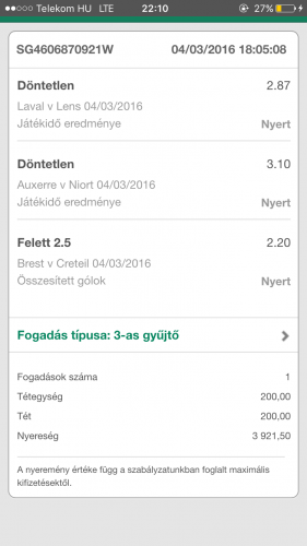 Hello! Ma felszerettem volna adni egy szelvényt amin volt 3 fogadás amik ezek voltak: