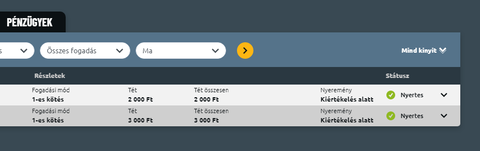 Tájékoztatunk, hogy technikai okok miatt egyes események nyereményeinek jóváírása késik. A hiba elhárítását munkatársaink azonnal megkezdték. Megértésedet köszönjük!