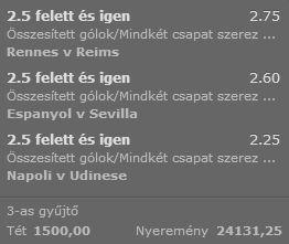 Ajax meccset nézi valaki? Mennyi esély van az over 2.5-re?