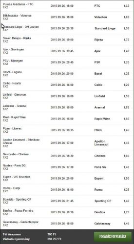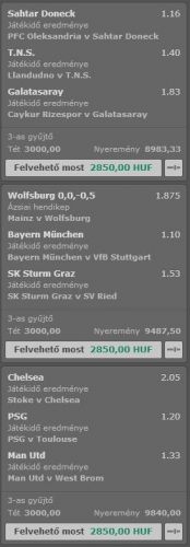 Na nekem apróval még ment mára egy PSG, Roma, Arsenal, Porto négyes.