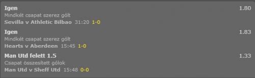 Nem tettem, de jó lehet még a Bilbao B gól 1,6 feletti szorzóért.