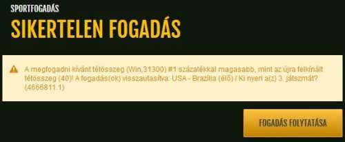 TippmixPro élő fogadás alatt a harmadik szettet nem engedi megfogadni, amikor a szorzók elérhetőek. Tehát nincs letiltva semmi, felfüggesztett szorzó sincs mégis elutasítják a fogadásaim. Pl.: 31300.-HUF tét elhelyezésekor 1.920.-HUF-ra módosítja a pénzt és az eredeti összeget nem engedélyezi.