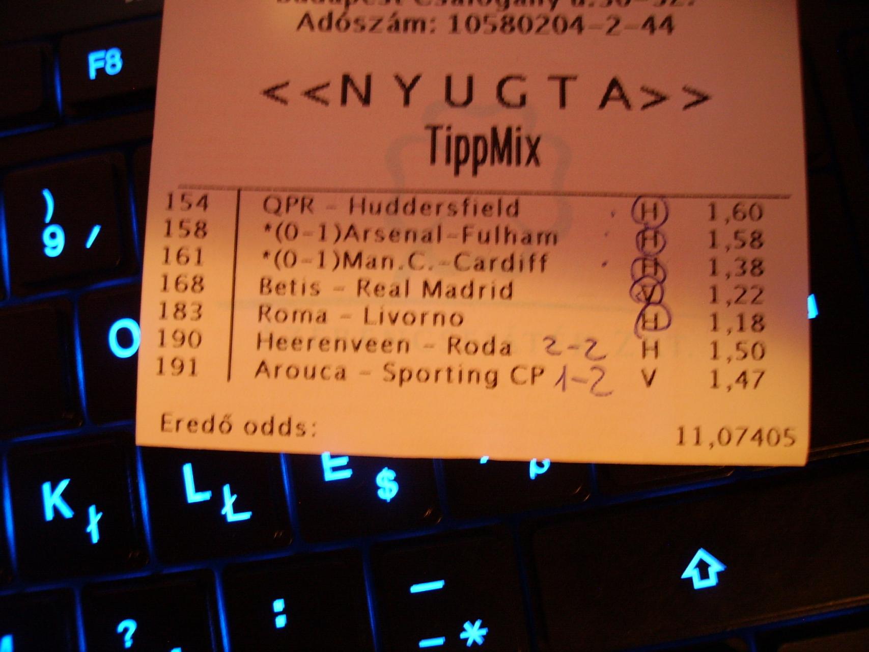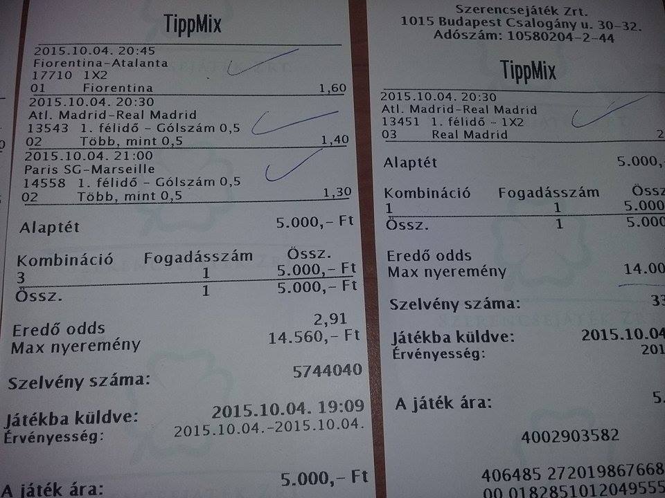 nem igen szoktam már fogadni de ma nagyon véletlen megfordult a fejemben teszek valamit