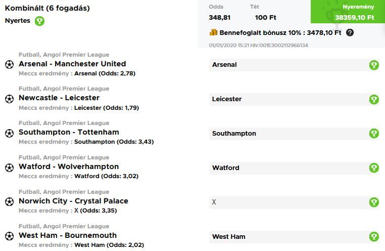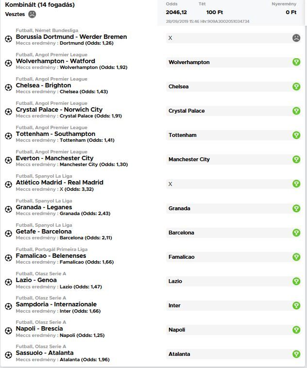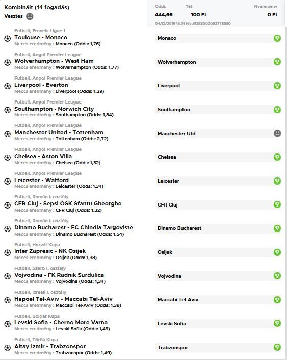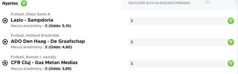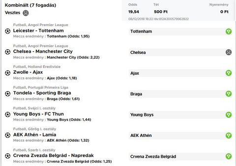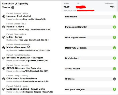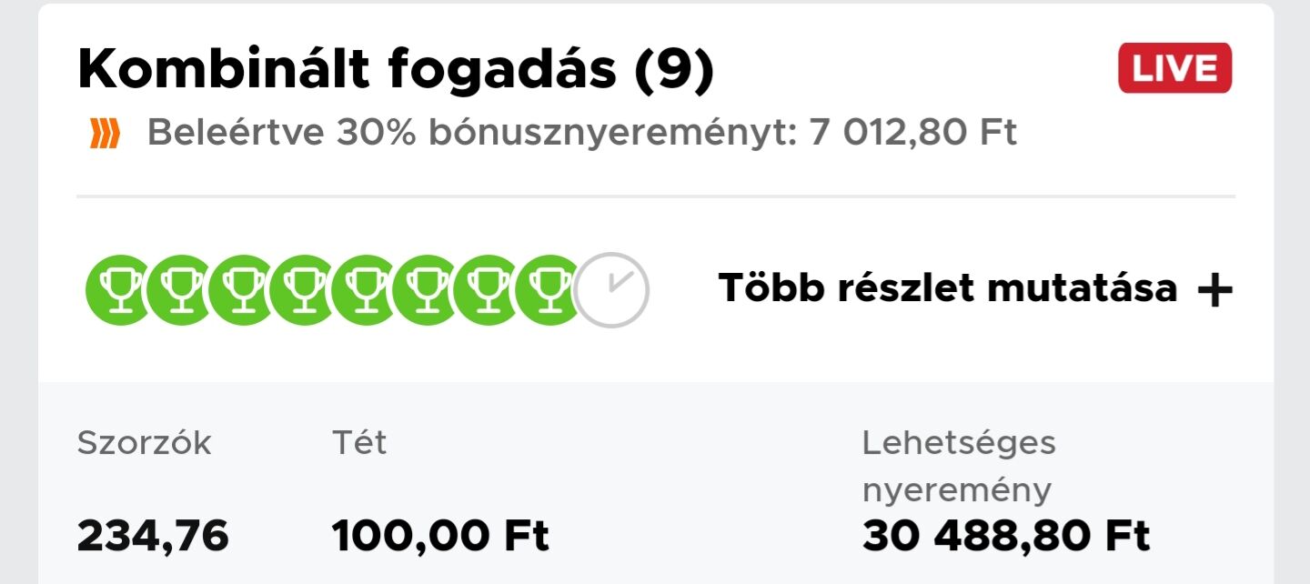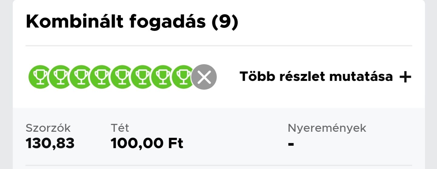 13 meccs, 119x szorzó. Mi ment el??? A Nyíregyáza kupameccs (Andráshida ellen).
