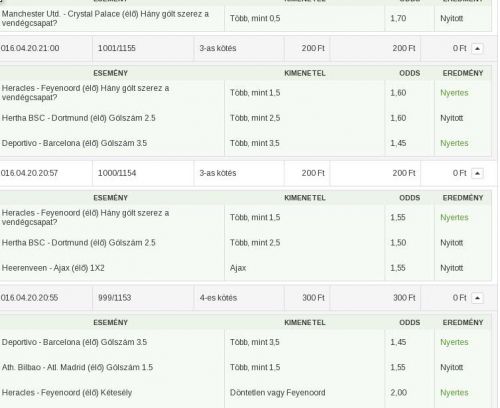 RB Leipzig - E. Frankfurt Gólszám 1,5 Több, mint 1,5 1,30 Nyitott2017.01.21.12:09 3-as kötés 500 Ft 500 Ft 0 Ft
