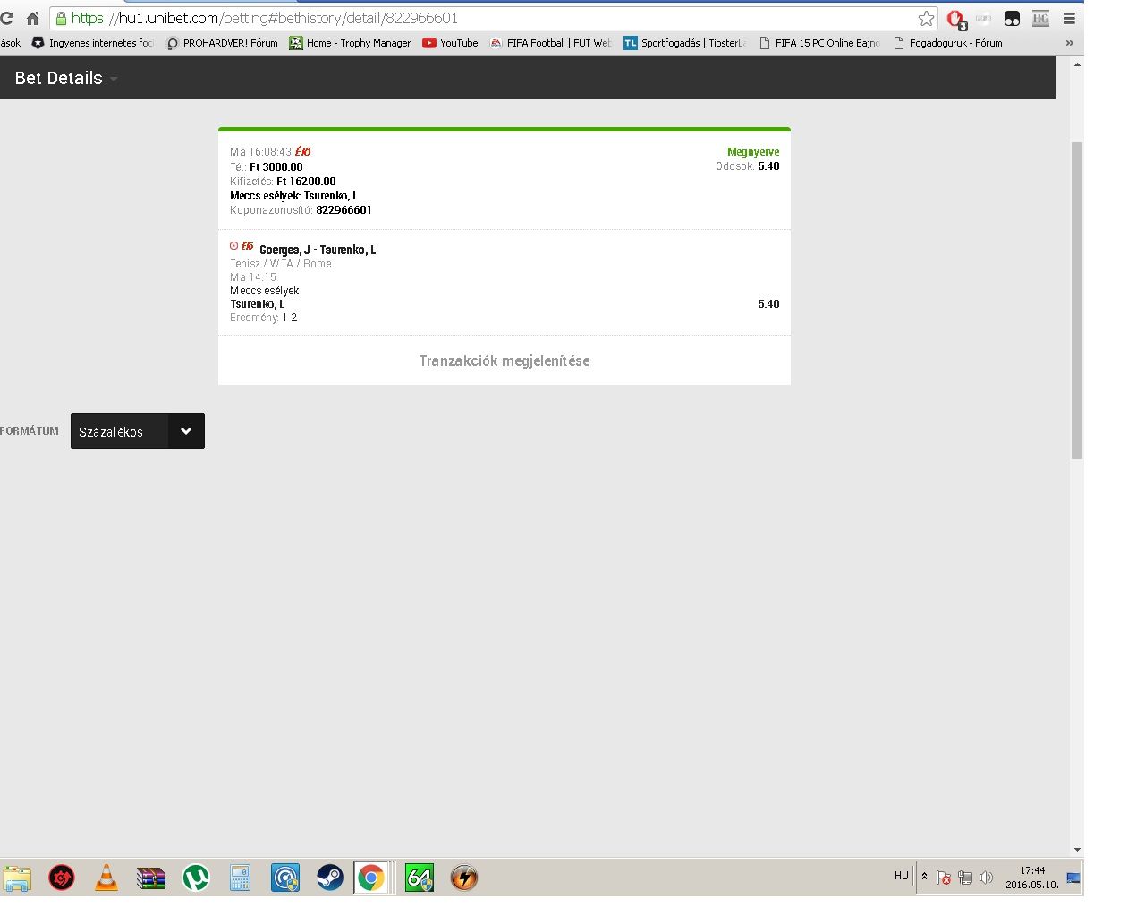 40 dollárom bánta, pedig én "csak" arra tettem h lesz még gól, a meccsen a kiállítás után.