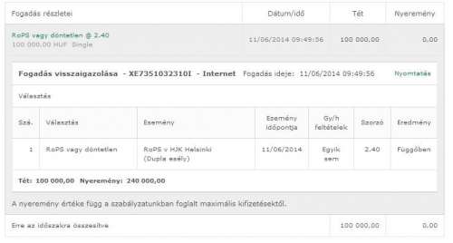orosz meccsre meg akartam rakni hogy nyernek az oroszok. Meg is raktam, 30k-t raktam ra. Mar beletorodtem hogy elment. Aztan az elobb belepek betre, es nezem hogy hogy a rakba ennyi az egyenlegem. Hat arra raktam veletlenul hogy kezdorugast elvegzo csapat xD 1,9es odds. El se hiszem