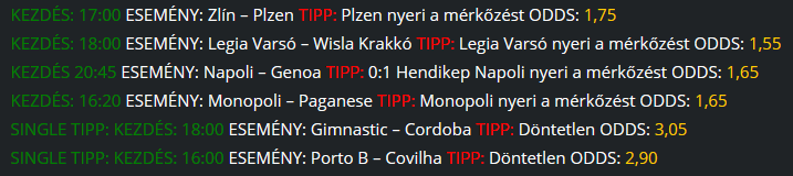 Közben találtam egy jónak tűnő oldalt. Minden nap e-mailben küldik az ingyenes tippeket.