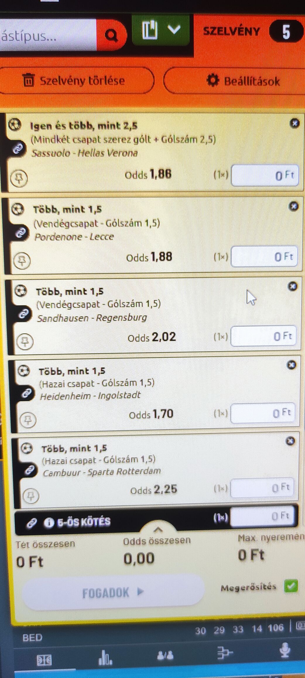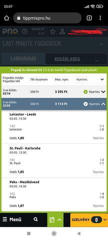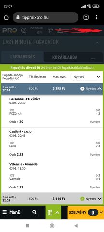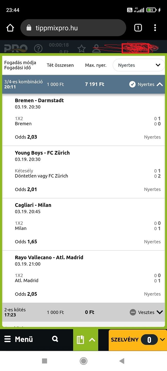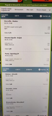 Minél kevesebbet raksz annál nagyobb az esélyed, 8-at eltalálni kurva nehéz, hiába kis oddsokat raksz! Leverkusen meccs már el is ment! Én már max 3 meccset rakok!