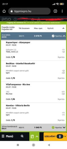Nekem is azon ment csak el, még jó, hogy 4/3-ban raktam meg, legalább valami vissza jött, Liverpoolt meg nem mertem helyette tenni, hát persze, hogy nyert!