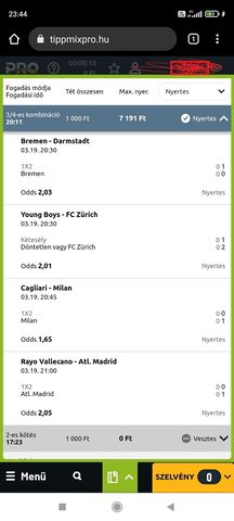 Hát most pont nem lett volna meg, arra ritkán is teszek Bundesliga2-ben mert kicsi általában rá az odds...