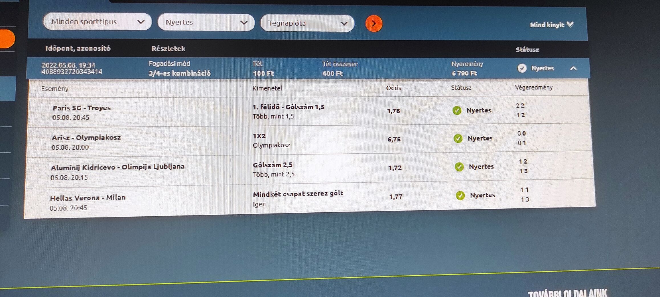 Köszi, grat neked is! Még suttyomba megraktam hogy nyer a West Ham, meg az Arsenal meccsen rúg golt a Jesus, persze, hogy most nem rúgott!