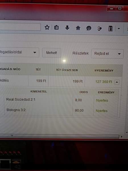 Hab a tortán, hogy az Alkmaar meccs is elúszóban volt, erre kigyullad a stadion, és 0-1-nél félbeszakítják a mérkőzést, elmarad, valószínűleg 1-es odds lesz.