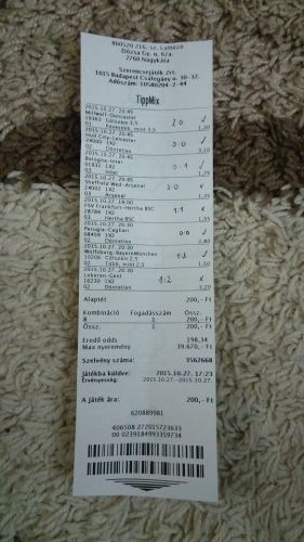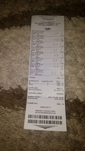 088: Vasas - DVSC V @2,0igazából egy 10x odds kellene amit megrakok 300ft-al és végre újra sikerélményem lenne...mostanában 1gólokkal mentek el a szelvények (összesen: 30.000ft értékben)