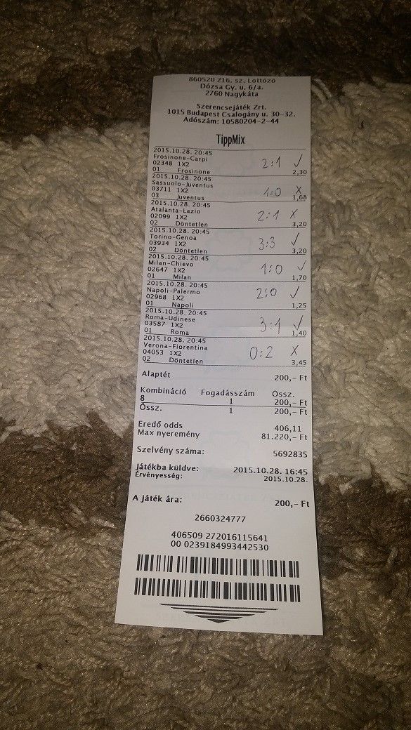 odds:16,56 tét:300huf várható:4900.-Aki ezek közül valamelyikre éppen fogadni akar, annak mi a véleménye?