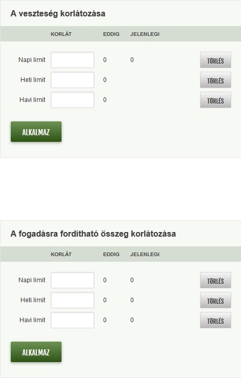 A Tippmixpro-n vágja valaki ezeket a korlátozás beállításokat? Egyszer valamit baromira elállítottam és azóta a legkisebb összegre (pl. 1k) is azt írja, hogy túlléptem a magamnak beállított keretet, nem tudok semmire rakni. Régebben voltak ott számok, de most beléptem és gyakorlatilag minden nullán van, tehát nem kéne korlátnak lennie, de még most is bármilyen minimum összegre azt írja, hogy túlléptem.