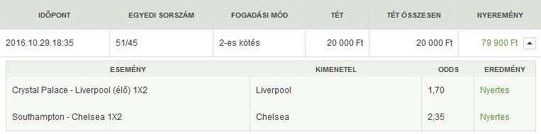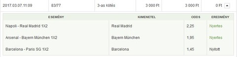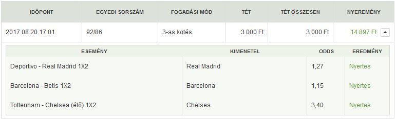 (Nem erősítettem meg a fogadást a végén.) Aztán megjátszottam vele 3 meccset, 20k -> 67k. -