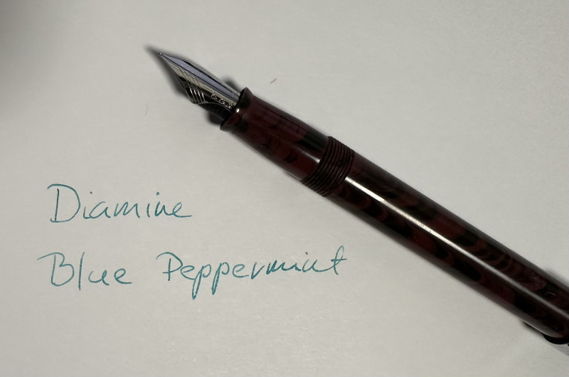 schawo titán Az új tollal botrányosan szar párosítást alkot. Az ebonit adagoló miatt nagyon nagylelkűen bánik a tintával, a toll nem szenved hiányt semmilyen tintában. Viszont ez a tinta önmagában is nagyon folyós, úgyhogy együtt elhozzák a nagy árvizet a papírra. Olyan tollal ajánlom a használatát, ami spórol a tintával.