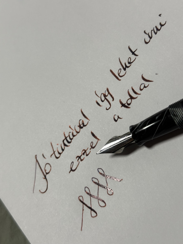 Most raktam M2-be másik Wancai Miniből származó egységet, de annyira ez sem jó, mint amit először kaptam, első Minivel. Vastagabb, és nedvesebb. Pelikan 4001 Brillant Braunnal próbáltam, és nagyon lassan szárad az írás. De mondjuk azért használható. De ezért is írtam, hogy feladom a kínai tollakkal való próbálkozást. Eddig tapasztalatom szerint túl nagy a szórás a minőség terén. -