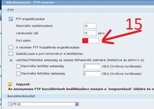 A NAS menüjében 21-es van beállítva, de én a küldő portot egy 5 számjegyűre állítottam.