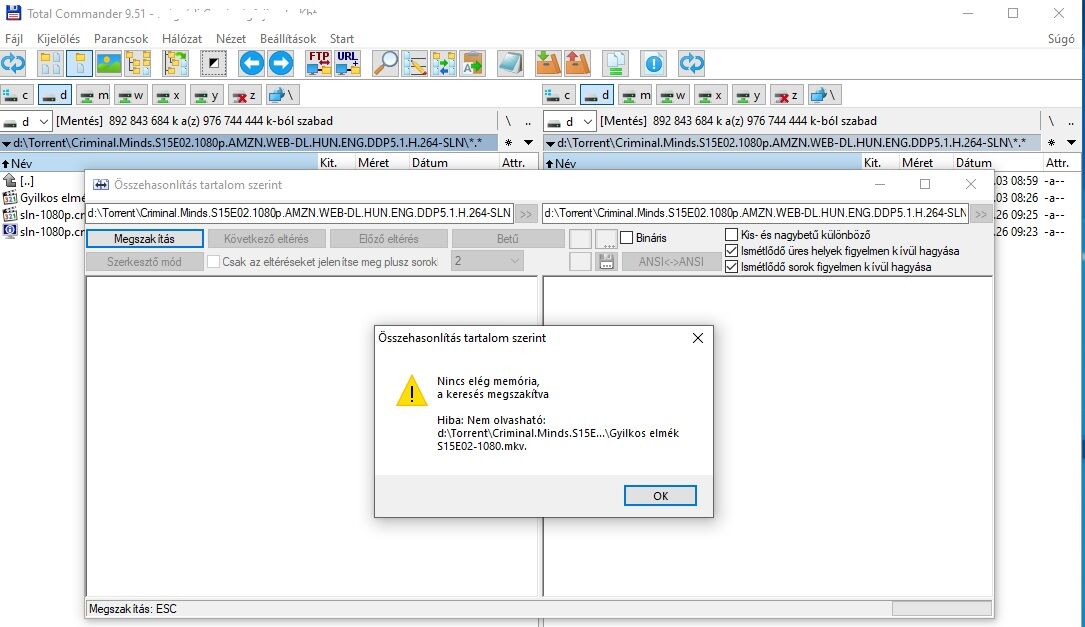 Sziasztok! TC9.51. Találkozott már valaki olyannal, mint én most, hogy nagyobb méretű fájlok összehasonlításánál azt írja ki, hogy elfogyott a memória?