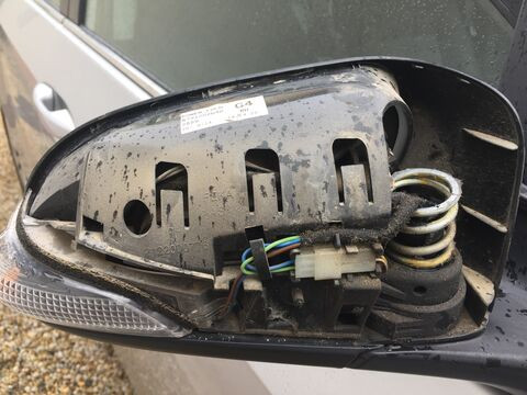 Amint látható a bal tükörnél a rugórögzítő fele le van törve, a jobbnál az egész, lötyög is annak rendje-módja szerint.
