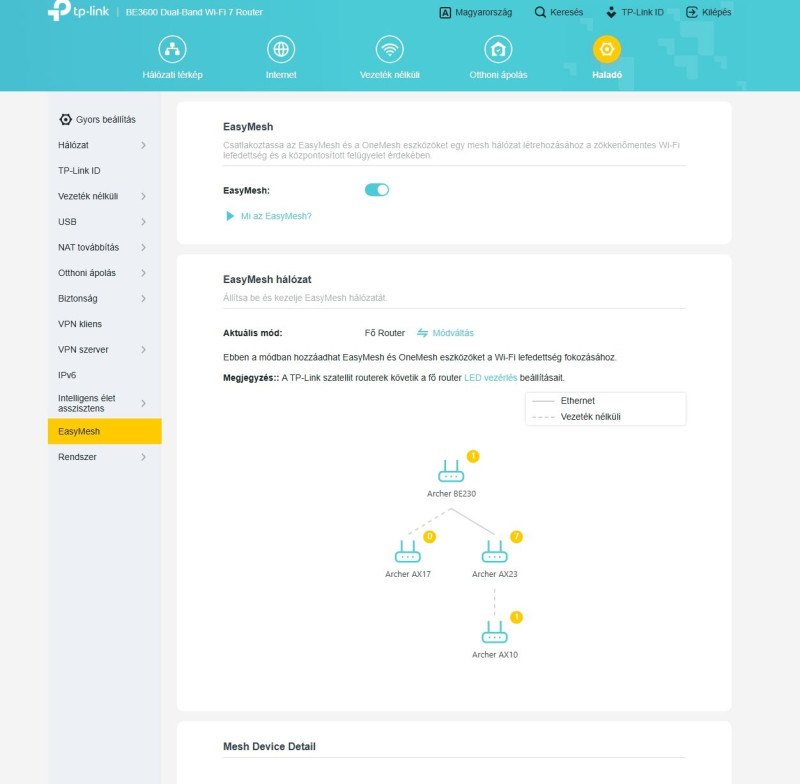 Fentebb írták, hogy az AX55 OneMesh képes, ami igaz, de EasyMesh képes is, mert router és router között a OneMesh nem működik.