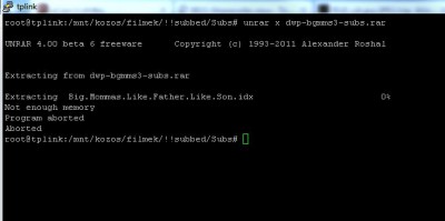 a letöltés megszakad, a router menüjében az initscripts alatt az usb drive-ot újra kell startolni, majd be kell tölteni a torrentet újta és megvárni míg végig fut a már letöltött cuccon, ezután elkezdődik a letöltés de pár perc múlva megszakad. Ilyenkor vagy csak a letöltés szakad meg és a router ledobja a vinyót vagy a net is elszáll és a pc-n sincs net pár másodpercig, amíg újra megtalálja a hálózatot.Ilyenkor minden kezdődik elölről.