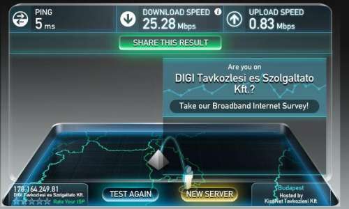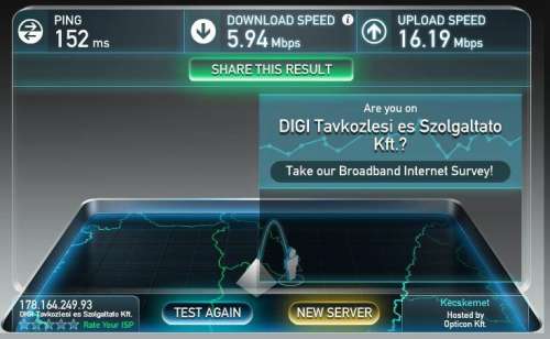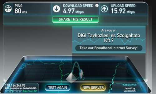 Érdekes probléma. Mivel a 20/10-es DIGI netem pár hete 20/0.8 körül van tartósan panaszkodtam a szolgáltatómnál. Kérte készítsek mérést roter nélkül is és küldjem el nekik a képeket.