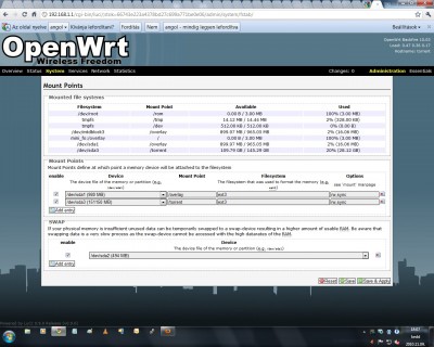 root@INT-ROUTER:/tmp/home/root#Így viszont nem lehet swap-et használni, ami torrentezésnél nagy gondot jelenthet... Illetve lehet, hogy van mód a telepítésére, de ez most annyira nem foglalkoztat már. Minden esetre 20-30 torrentnél biztosan hiányozni fog már.