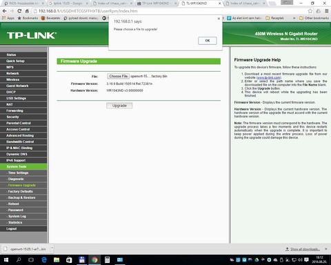 Benyomom a V3-as router-nek a megfelelő helyére... lásd kép. Majd felhozza az ablakot, hogy jelöljem ki a file-t, hogy mit szeretnék rátenni....