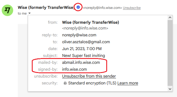 "Ha megkérünk, hogy kövess egy, az emailben szereplő linket, az oldal, amire vezet, mindig ezzel az URL-lel kezdődik: https://wise.com"Az e-mail -ben levő kártyaigénylés linkjét írtam korábban (https://ablink.info.wise.com/) Ez sem stimmel.