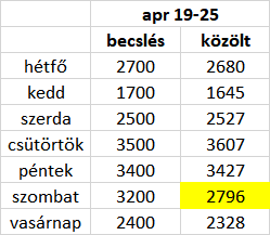Volt ugye egy ilyen becslésem 1 hete, itt egy napot nem találtam el, a többi stimmelt.