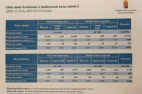 Cikk a telexen: A kormány táblázatban foglalta össze az oltások utáni fertőzöttségi és halálozási adatokat