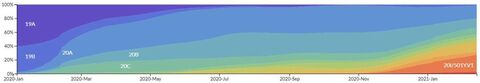🖼️A mellékelt képen a járvány kitörése óta megelent és egymást folyamatosan "leváltó" újabb és újabb variánsok látszanak (forrás: https://nextstrain.org/ncov/global)