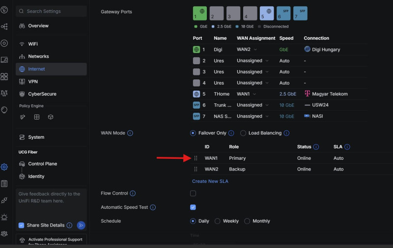 Ha egy UCG-maxban van 2 független internet bekötve, akkor lehet köztük váltogatni hogy melyik legyen a használt, s melyik a backup? -