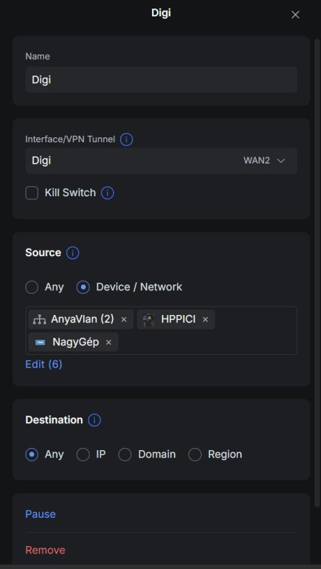 Policy Based routing adott vlanból és eszközökről digi felé megy minden: