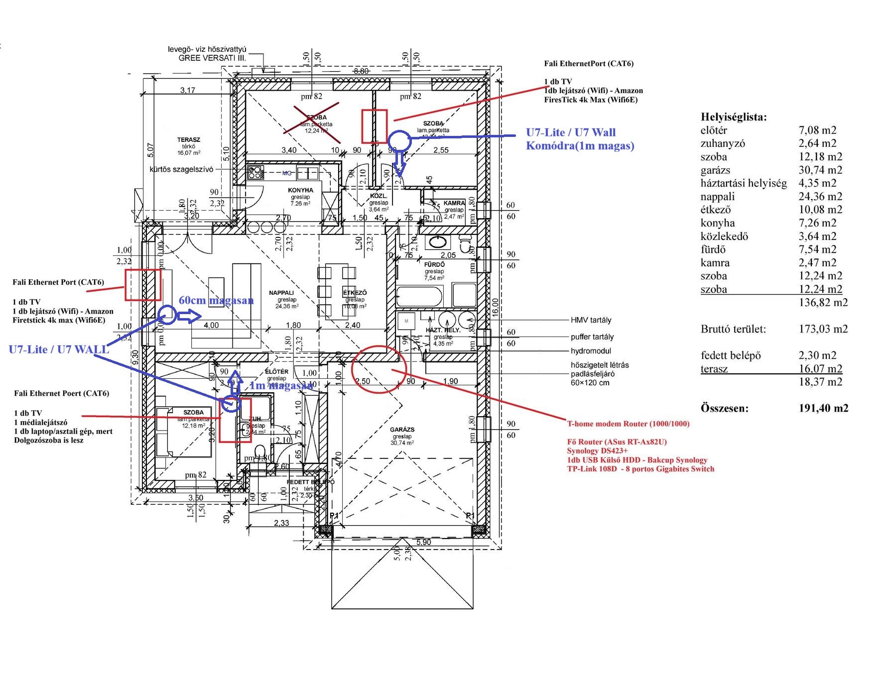 Teraszon van kint, MESH-en még 2 AP csatlakozik rá, a vezetékes portján meg egy IP kamera.