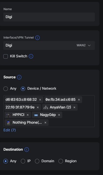 Adott egy UCG-Max amin fut egy WireGuard server amit elérek telefonnal és megy rajta minden és van egy Proton VPN szolgáltatón keresztüli WireGuard VPN kliensem is. Azt szeretném megoldani hogy a protonos VPN klinesen keresztül menjen a WG server forgalma. De sehogy nem jövök rá hogy hogy tudom a WG server forgalmát átirányitani a Protonos kliens forgalmára. Static route nál bármit csinálok nem akarja az igazat de lehet hogy rosszul csinálom vagy nem ott kell.Válaszotokat előre is köszönöm.